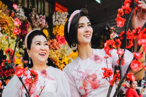 Kim Tuyến cùng mẹ dạo chợ Tết