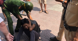 Cảnh sát tước dao, bắt nóng tên cướp giật điện thoại của du khách