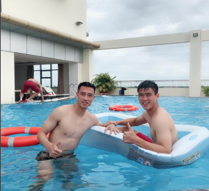 Mạnh “gắt” khoe body ở bể bơi, Đức Chinh trêu trọc thầy Park trong buổi sáng đầu tiên ở Myanmar