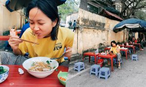 H’Hen Niê ăn liền hai bát bún, miến ngan lề đường
