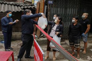 Tiếp tế lương thực cho người dân trong khu cách ly