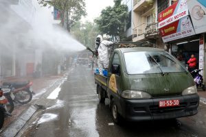 Binh chủng hoá học (Bộ Quốc phòng) phun chất tiêu độc, khử trùng phố Trúc