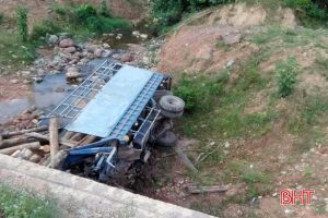 Xe chở gỗ lao xuống khe ở Hà Tĩnh, 2 người tử vong