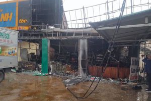 2h ngày 26/12, khói lửa bốc lên từ siêu thị mini Phú Sơn ở phường