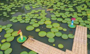 Cây hoa súng Victoria amazonnia ở vườn bách thảo tại Vân Nam có lá rộng
