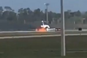 Một máy bay hạng nhẹ chở theo hai người bốc cháy trên đường băng khi