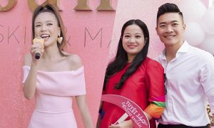 MC Hồng Phượng diện trang phục thoải mái, che bụng bầu 7 tháng khi dự