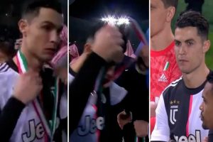 Cristiano Ronaldo tháo HC bạc giải Siêu Cup Italy ngay sau khi nhận từ Ban