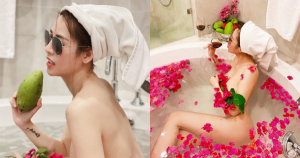 Quế Vân bất ngờ tung ảnh nude toàn tập, khoe thân táo bạo trong bồn tắm, nhưng cho hỏi quả xoài ở đây làm gì vậy?