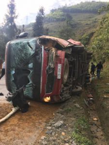 Sáng ngày 6/1, một chiếc xe khách vào cua bị lật nghiêng đè trúng một