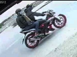 Hai thanh niên đeo khẩu trang, mặc áo khoác đen kín người, vờ đổi ngoại