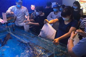 Tuấn rủ nhóm bạn đến siêu thị mua tôm hùm giá rẻ nhưng vừa tới
