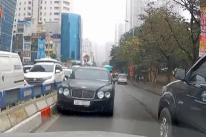 Dù có dải phân làn, tài xế xe Bentley vẫn cố tình chạy ngược chiều