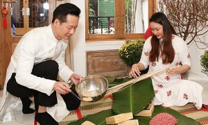 Chồng đại gia phụ Phan Như Thảo gói bánh chưng