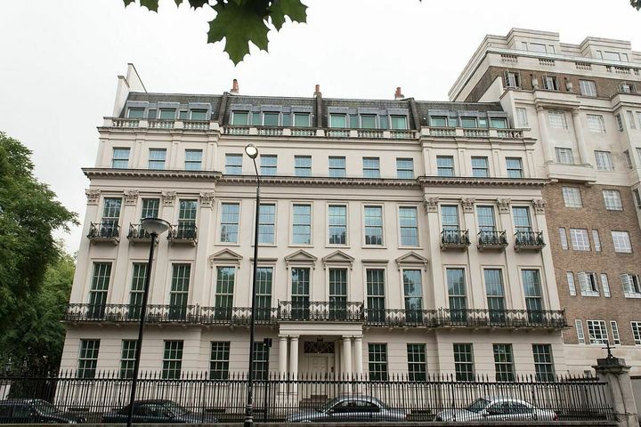 Bên ngoài căn biệt thự tại Rutland Gate. Ảnh: AFP
