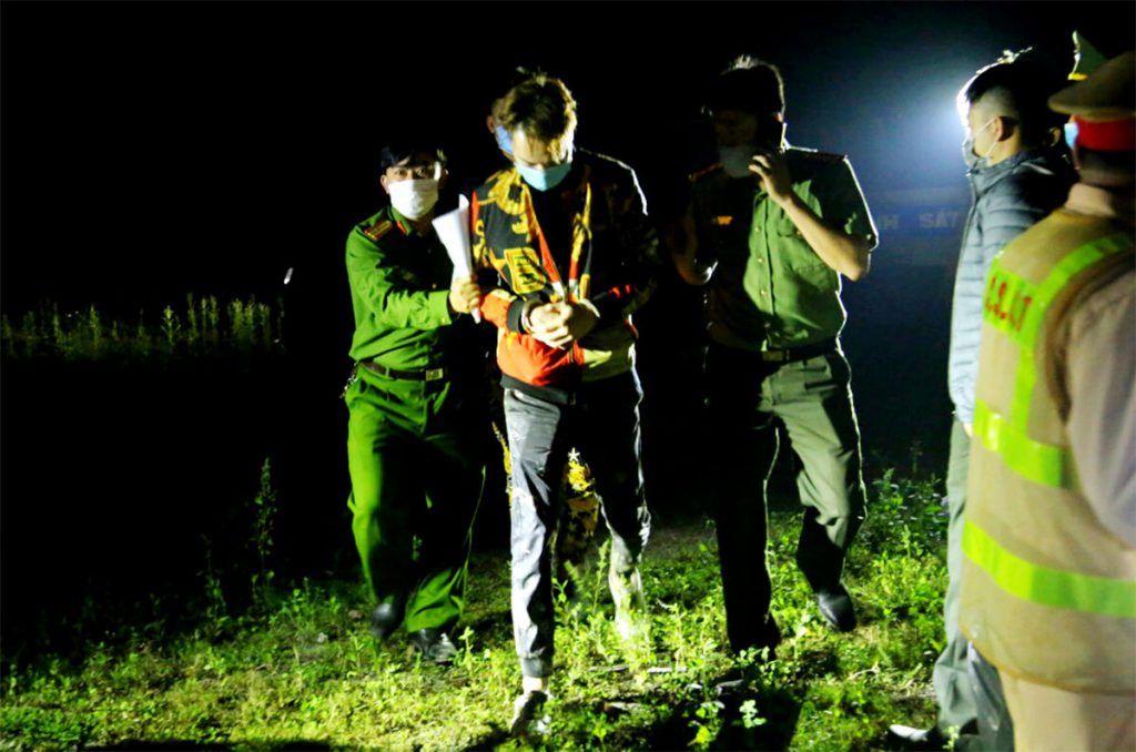 Bỏ chạy được 10 km, đến xã Kỳ Thọ (huyện Kỳ Anh) thấy phía trước có một số ôtô, xe máy ùn ứ, giống biểu hiện tắc đường, tài xế Trung cho xe dừng lại. Ngay lập tức, tổ công tác thứ hai ập tới. Zhan và Xiang mở cửa sau xe định xông ra ngoài bỏ chạy, song bị khống chế.