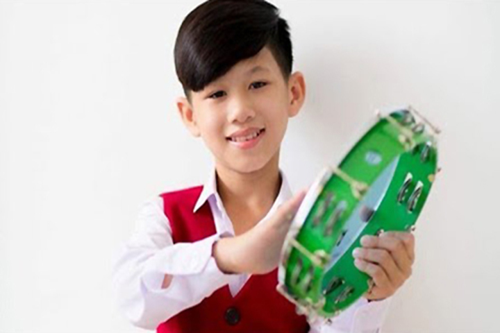 Hiếu Trung biểu diễn trống lắc trên nền nhạc