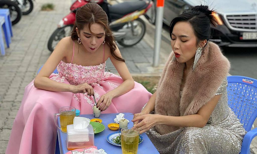 Ngọc Trinh (trái) biết Diệu Nhi từ vài lần tham gia chung gameshow nhiều năm trước nhưng bắt đầu thân thiết sau dự án Vu quy đại náo quay năm 2018. Họ quý nhau ở tính cách thật thà, vui vẻ. ‘Nếu chấm về độ thân nhau, chắc hai đứa chỉ đạt 7/10. Nhưng chúng tôi thường tâm sự nhiều chuyện, quan tâm công việc lẫn nhau’, Ngọc Trinh cho hay.