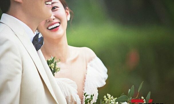 Trong loạt ảnh được hé lộ, mỹ nhân Hàn cười hạnh phúc bên ông xã. Nữ diễn viên giấu kín danh tính chú rể.
