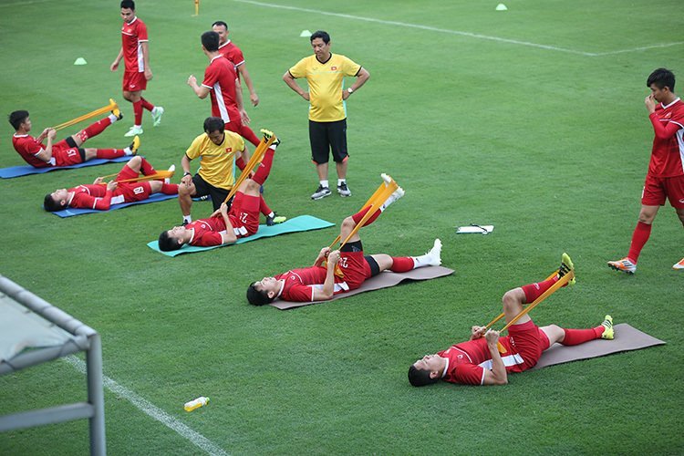 Hình ảnh toàn đội luyện tập trước bán kết lượt về gặp Philippines.