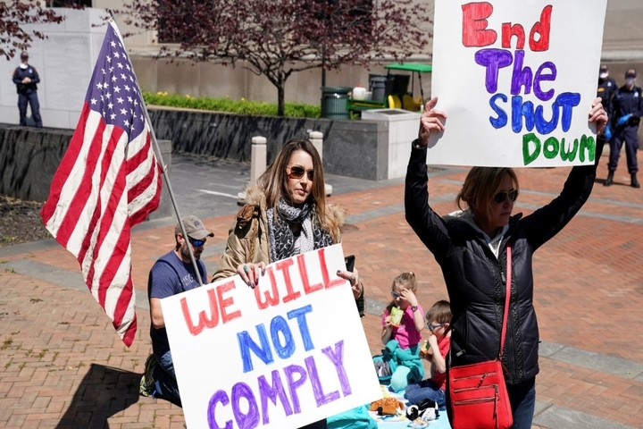Một số người ở Minnesota, Michigan, Ohio, Bắc Carolina, Virginia và các bang khác vài ngày qua biểu tình phản đối kéo dài lệnh yêu cầu công chúng ở nhà. Một số mang theo súng, vẫy cờ Trump và biểu ngữ yêu cầu chính quyền tái mở cửa.