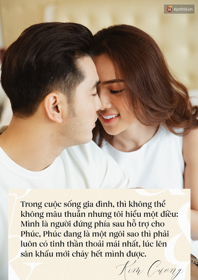 “Kim Cương và Phúc rất có ý thức trong vấn đề giữ lửa trong tình yêu. Ngay từ những thời điểm đầu, trong mối quan hệ của cả hai đã đề ra những giới hạn, như việc ai sẽ nhường nhịn ai khi cãi vã. Đó là quy tắc chung. Mà thú thực, Kim Cương thương là người nhường nhịn, làm lành với Phúc mỗi khi tranh cãi. Trong cuộc sống gia đình thì không thể không có những mâu thuẫn nhưng Kim Cương hiểu một điều: Mình là người đứng phía sau hỗ trợ cho Phúc. Phúc đang là một ngôi sao, là một ca sĩ nổi tiếng thì phải luôn có tinh thần thoải mái nhất, lúc lên sân khấu thì mới cháy hết mình được. Thế nên, Kim Cương hiểu và không để tâm để cả khi có fan nữ lên sân khấu ôm, hôn anh Phúc. Đó còn là điều hạnh phúc mà người nghệ sĩ nên trân trọng”.