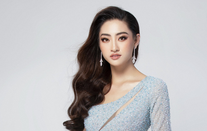 Hai mẫu đầm của Lương Thùy Linh đều có thiết kế xẻ đùi, tông màu nhã nhặn. Nhà thiết kế Lê Thanh Hòa chia sẻ anh chọn phom dáng tôn thế mạnh hình thể người mặc nhiều nhất. Phần đuôi váy không quá rườm rà, giúp đại diện Việt Nam thuận tiện hơn khi catwalk.