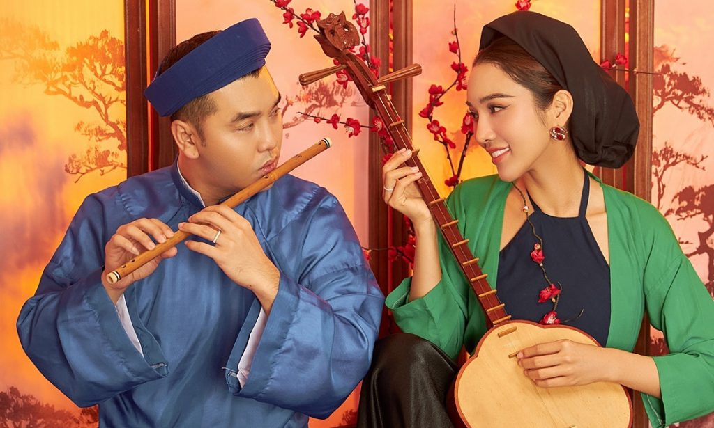 Cặp đôi cũng thực hiện bộ ảnh với trang phục truyền thống như áo Nhật Bình, áo dài, áo tứ thân, để kỉ niệm lần đầu song ca.