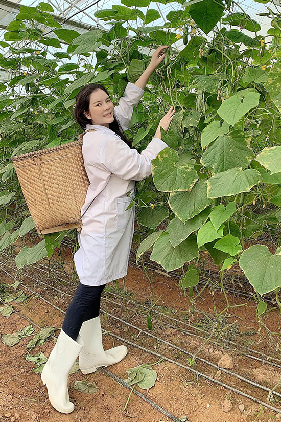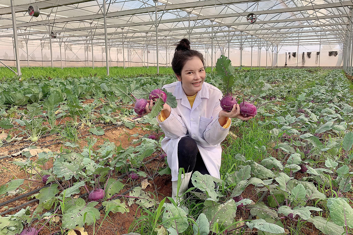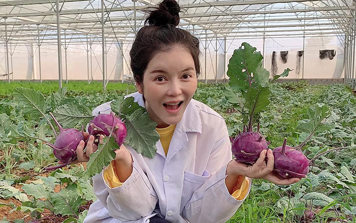 Những ngày tránh dịch, Lý Nhã Kỳ thăm nông trại ở Đà Lạt và thu hoạch su hào tím, dưa leo… Nông trại nằm trên ngọn đồi, cách trung tâm 20 km. Cô cho biết vườn toàn rau củ sạch trồng theo phương pháp hữu cơ.