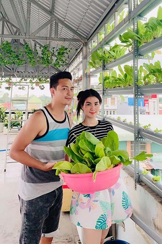Kha Ly – Thanh Duy trồng rau trên sân thượng ở nhà (quận 4, TP HCM). Vợ chồng cô thiết kế giàn rau thủy canh để đảm bảo rau sạch, không phải chăm sóc nhiều. Diễn viên thích việc bỏ từng hạt cải và theo dõi rau lớn lên từng ngày. Tầm nửa tháng, cô thu hoạch một lần. Cô nói: “Thời gian qua, nhờ khu vườn, chúng tôi không phải đi đâu xa mua rau. Tôi vừa gieo giống và chờ đợt hái tiếp theo”.