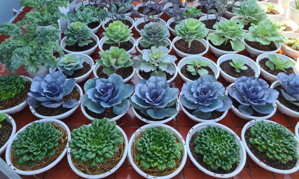 Ngày Tết chị Tươi đem các chậu rau có màu sắc sặc sỡ và hình dáng như bông hoa trưng trước nhà, khiến khách đến chơi thích thú.