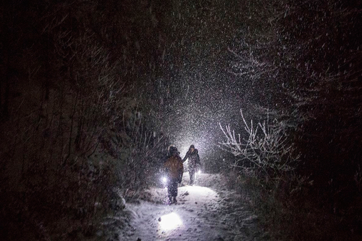 Nhóm người Ai Cập đang đi bộ qua một vùng núi phủ tuyết dày được cho là vẫn còn rải rác bom mìn từ thời chiến tranh. Những người di cư cố gắng di chuyển thật nhanh trước khi thời tiết trở nên xấu đi.