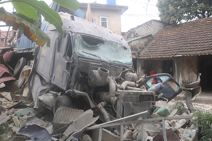 Tai nạn xảy ra lúc 4h ngày 2/3. Xe container đâm thẳng vào nhà bà Hồ Thị Tài và một hộ dân khác, may mắn không ai bị thương.